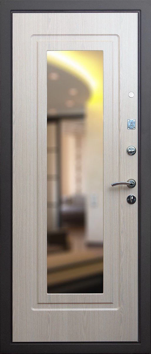 Прочная металлическая Дверь с зеркалом DZ385 по цене от 30 000 руб. под заказ в любой комплектации. Вы можете выбрать материал, замки, цилиндры и многое другое. Производим сами! Быстрая доставка и установка в Гатчине.