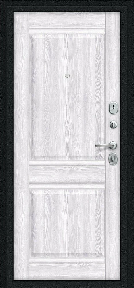 Надежная входная Дверь Браво Некст Kale Букле черное/Riviera Ice премиум класса по цене 35 861 руб. Большая толщина стали защитит от проникновения в ваш дом, квартиру или коттедж. Используется очень качественная фурнитура: замки, цилиндры, ручки, защелки. Покрытие и отделка двери изготовлено под внимательным контролем производителя. Дверь имеет долгий срок службы и гарантию.