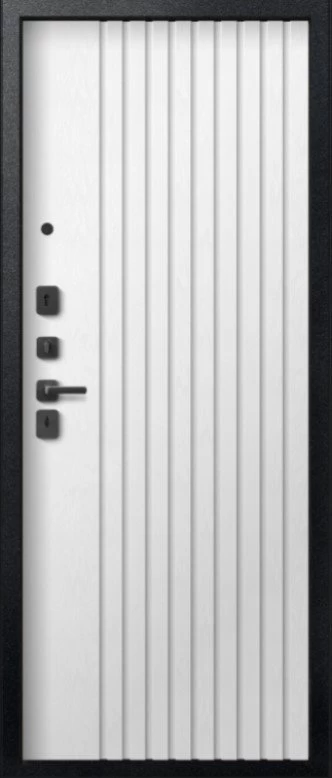 Надежная входная Дверь V-15 Черный муар + Бетон темный - Софт ясень белый премиум класса по цене 43 991 руб. Большая толщина стали защитит от проникновения в ваш дом, квартиру или коттедж. Используется очень качественная фурнитура: замки, цилиндры, ручки, защелки. Покрытие и отделка двери изготовлено под внимательным контролем производителя. Дверь имеет долгий срок службы и гарантию.